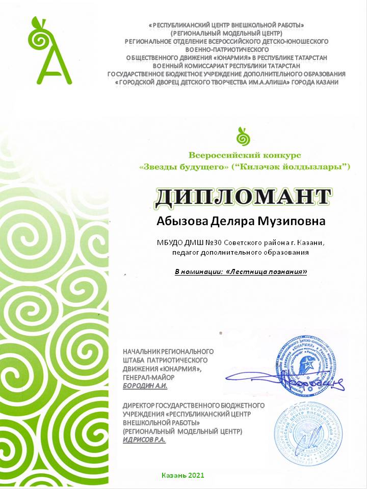 Всероссийский конкурс "Звезды будущего" - Абызова Д.М. - Дипломант в номинации "Лестница познания"