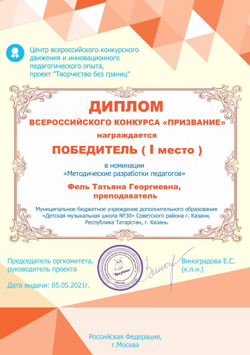 Международный конкурс педагогического мастерства "Art-Victori" - Фель Т.Г. - III место