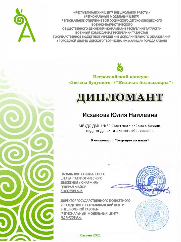 Всероссийский конкурс "Звезды будущего" - Исхакова Ю.Н. - Дипломант в номинации "Будущее за нами"