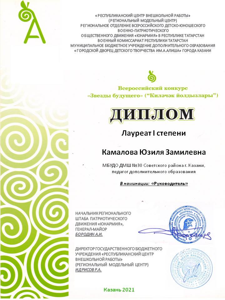 Всероссийский конкурс "Звезды будущего" - Камалова Ю.З.- I место в номинации "Руководитель"