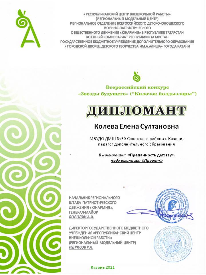 Всероссийский конкурс "Звезды будущего" - Колева Е.С. - Дипломант в номинации "Преданность детству"