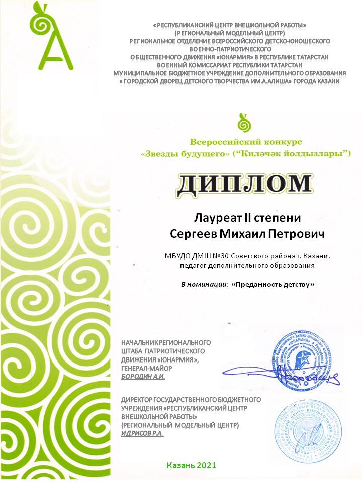 Всероссийский конкурс "Звезды будущего" - Сергеев М.П. - II место в номинации "Преданность детству"