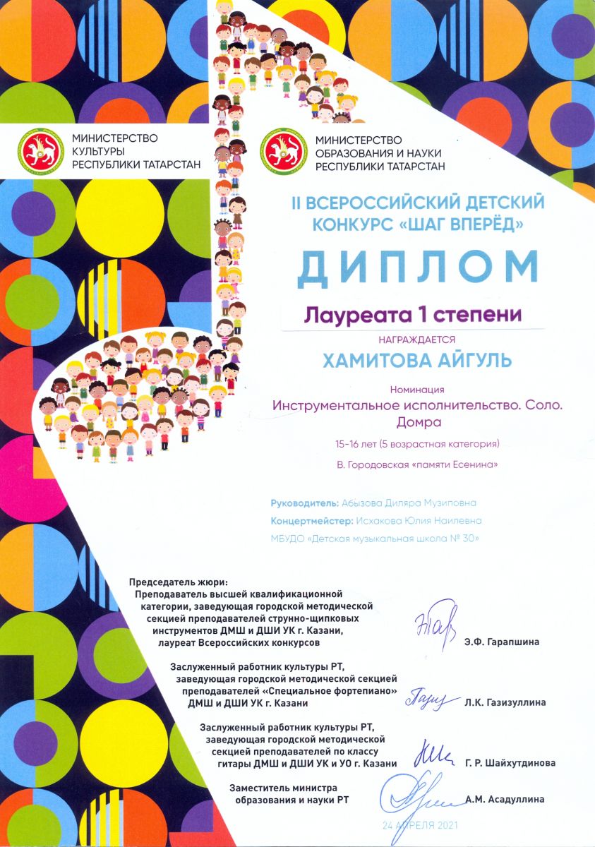 II Всероссийский детский конкурс "Шаг вперед" - Хамитова Айгуль - I место