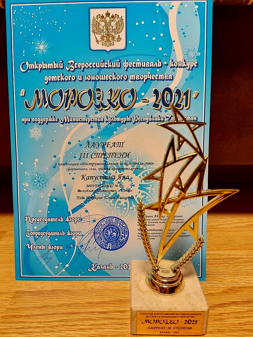 Всероссийский конкурс искусств "Новогодняя планета" - Гараева Диана - III место