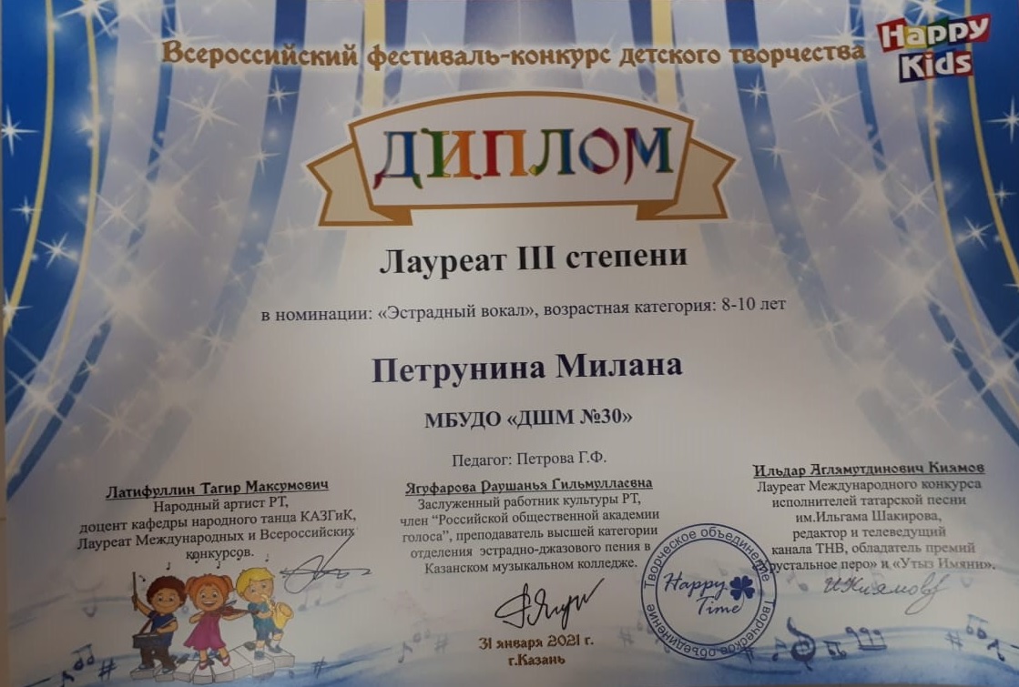 Всероссийский фестиваль-конкурс детского творчества "Happy Kids" - Петрунина Милана - III место