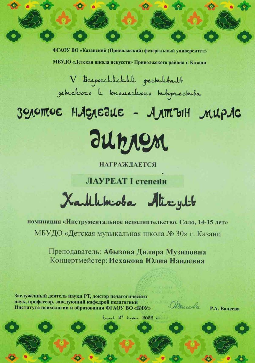 Всероссийский фестиваль-конкурс искусствы "Культурное наследие" - Мисбахова Сафина - II место