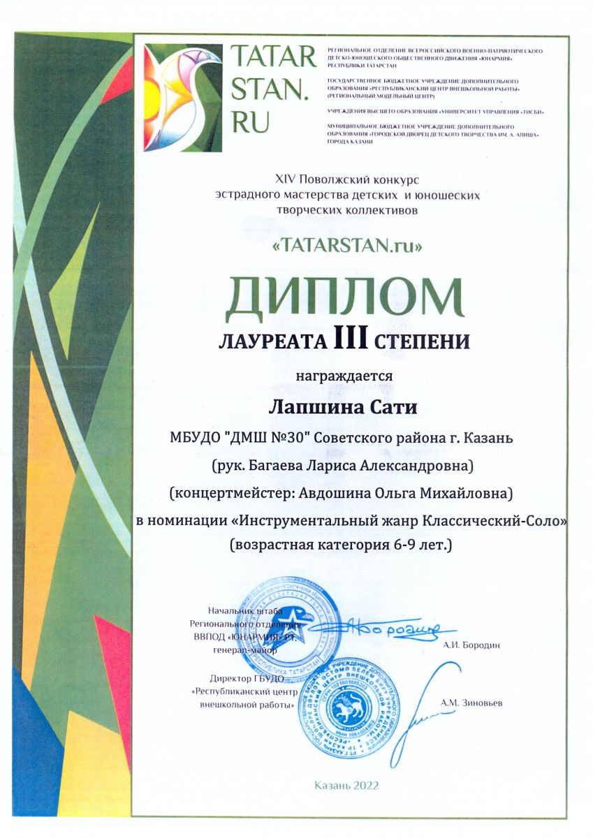 Всероссийский конкурс искусств "Арт-держава" - Газизова Самира - II место