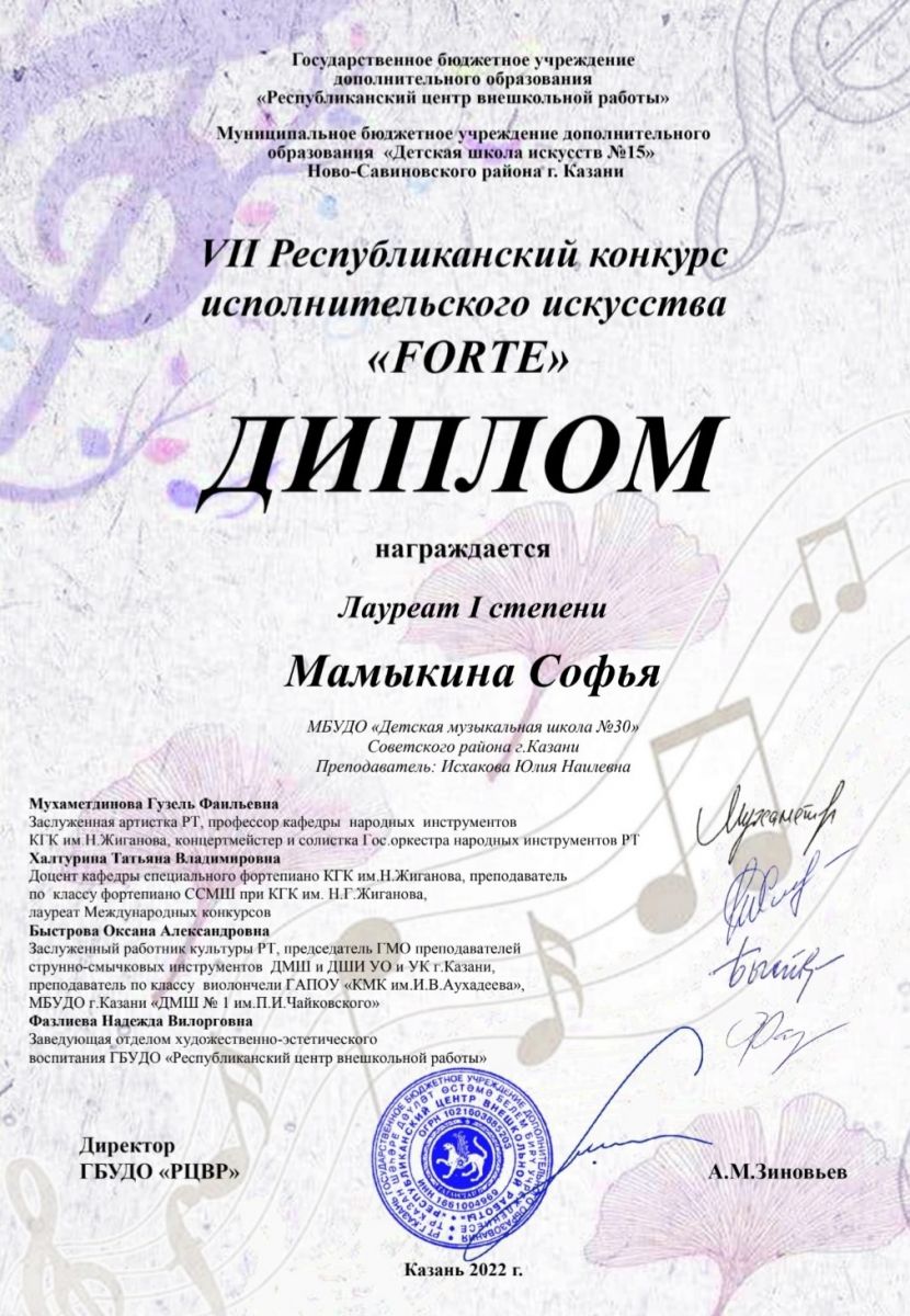 VII Республиканский конкурс исполнительского искусства "FORTE" - Мамыкина Софья - I место