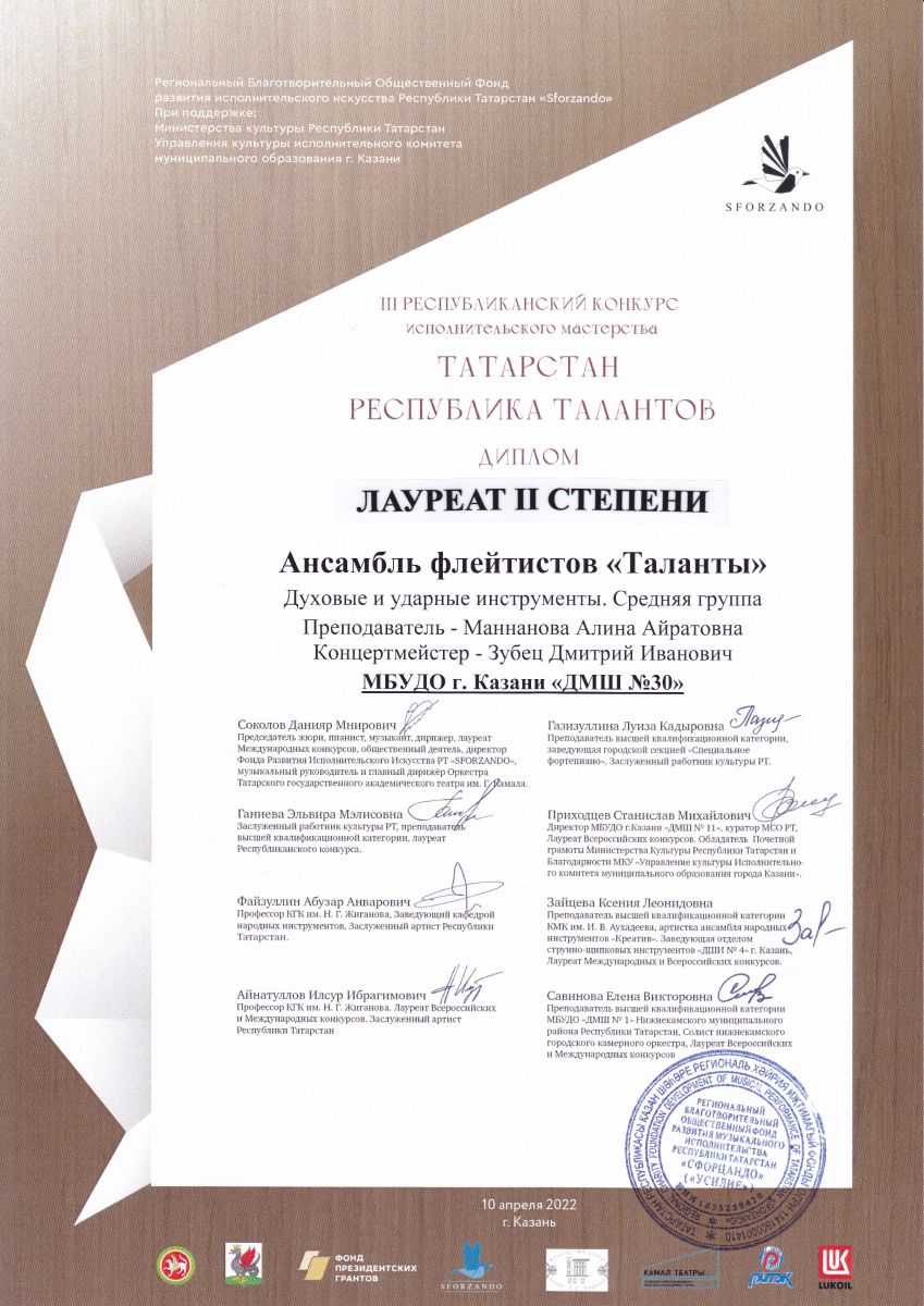 VII Республиканский конкурс исполнительского искусства "FORTE" - Гайнутдинова Илина - II место