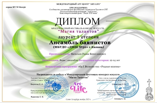 Международный фестиваль-конкурс искусств "Магия талантов" - ансамбль баянистов - I место