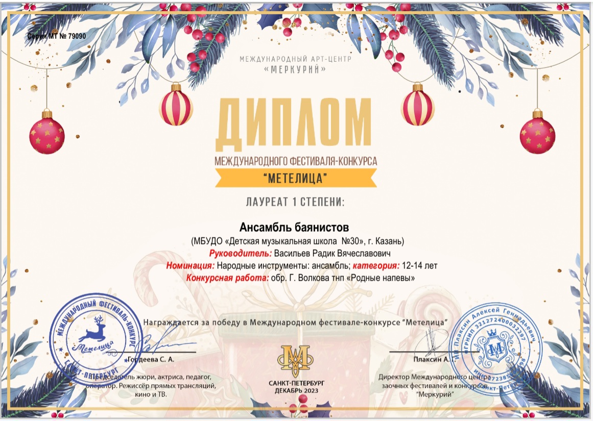 Международный фестиваль-конкурс "Метелица" - ансамбль баянистов - I место