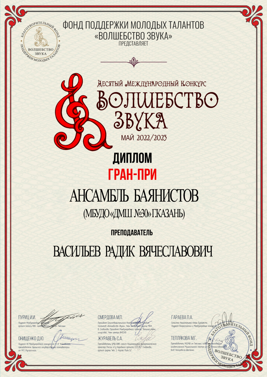 X Международный конкурс "Волшебство звука" - ансамбль баянистов - гран-при