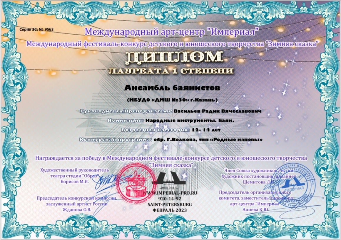 Международный фестиваль-конкурс искусств "Олимп-2023" - ансамбль баянистов - I место