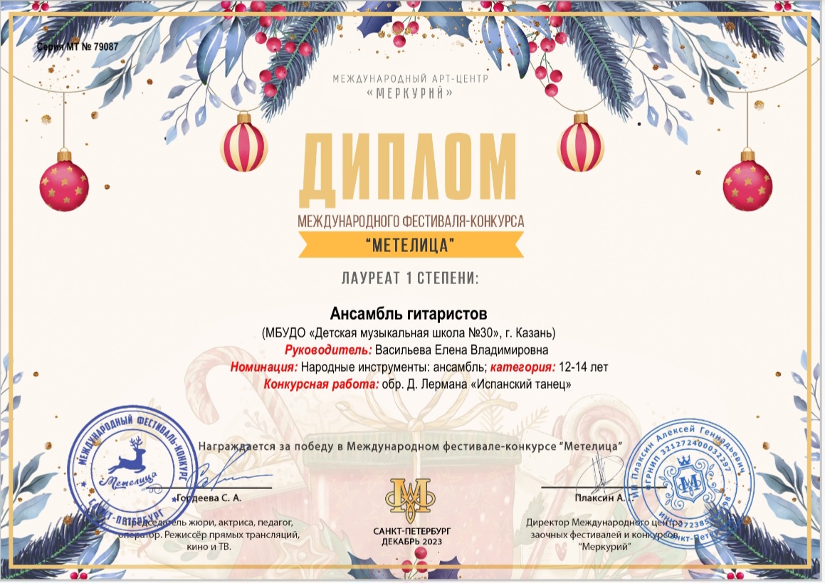 Международный фестиваль-конкурс "Метелица" - ансамбль гитаристов - I место