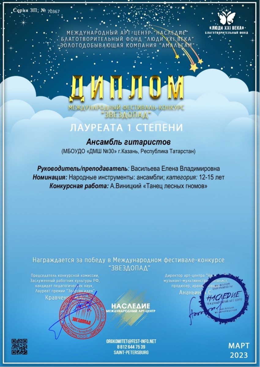 Международный конкурс искусства и творчества "Я - звезда!" - ансамбль гитаристов - I место