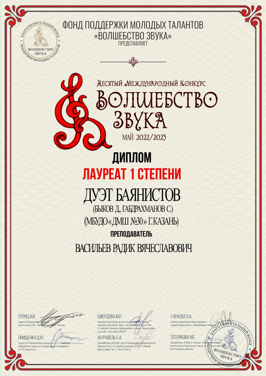 X Международный конкурс "Волшебство звука" - дуэт баянистов - I место