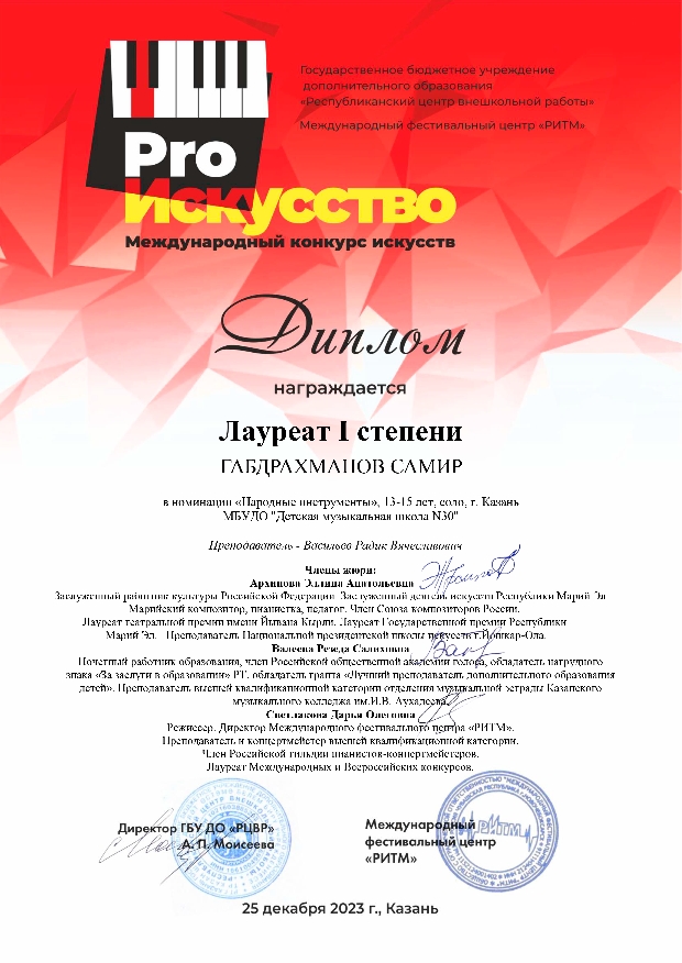 Международный конкурс искусств "Pro искусство" - Габдрахманов Самир - I место