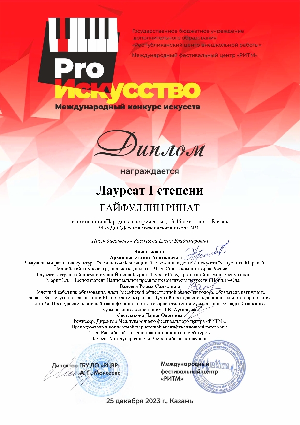 Международный конкурс искусств "Pro искусство" - Гайфуллин Ринат - I место
