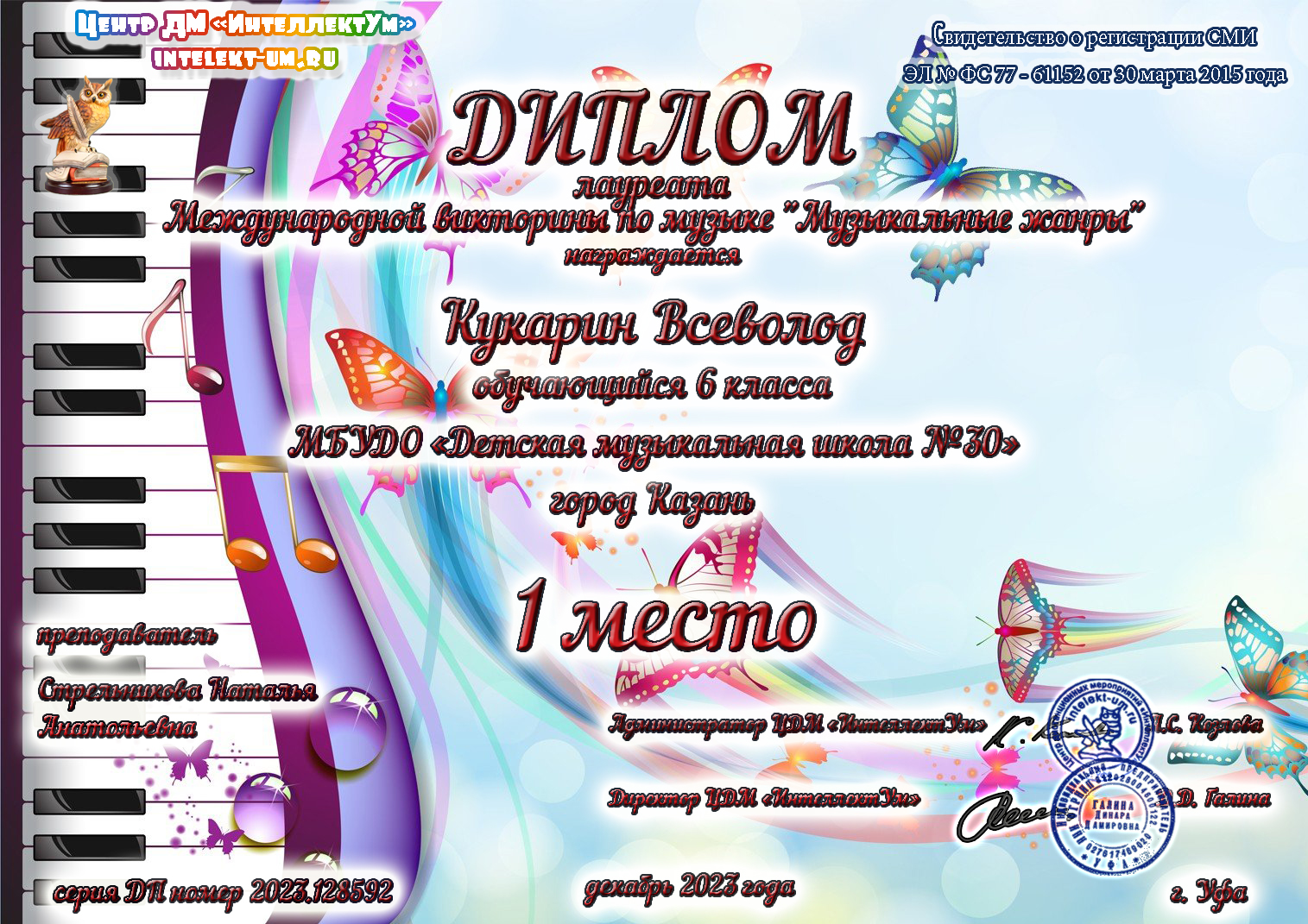 Международная викторина по музыке "Музыкальные жанры" - Кукарин Всеволод - I место