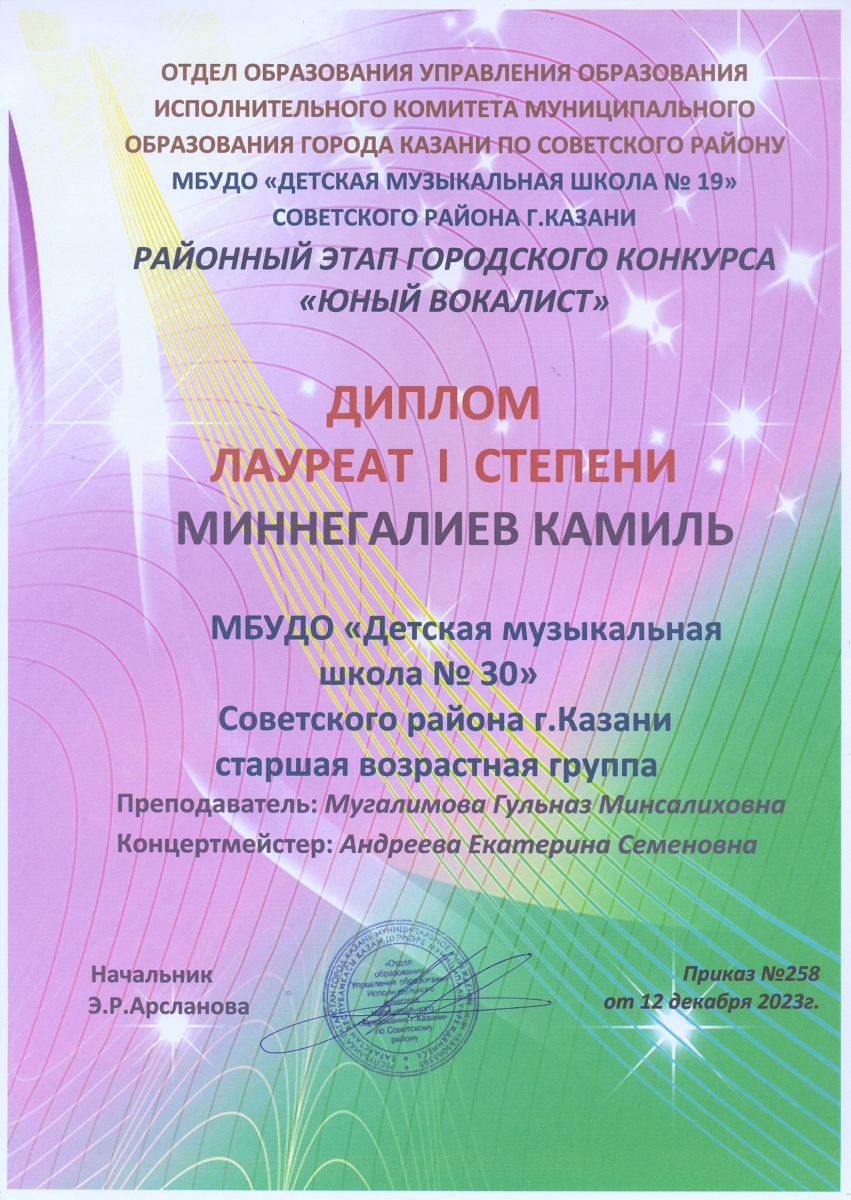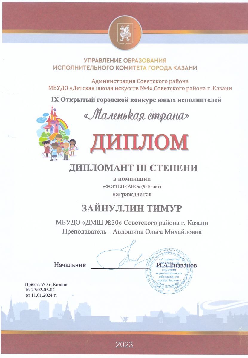 III Городской конкурс "Звуки мира" - Ибрагимов Хайдар - диплом