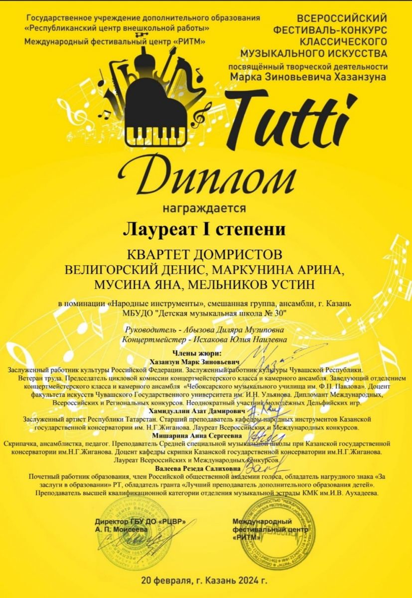 Муниципальное бюджетное учреждение дополнительного образования «Детская музыкальная школа №30» Советского района г.Казани