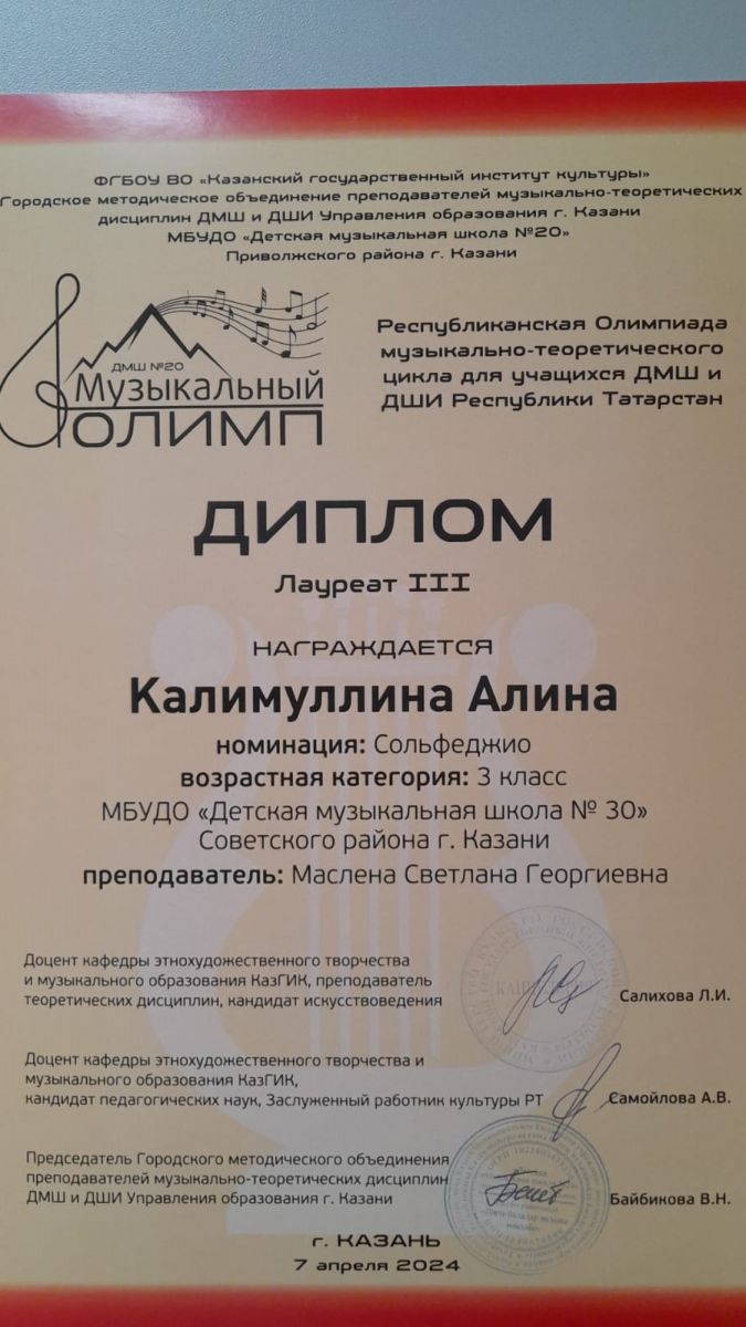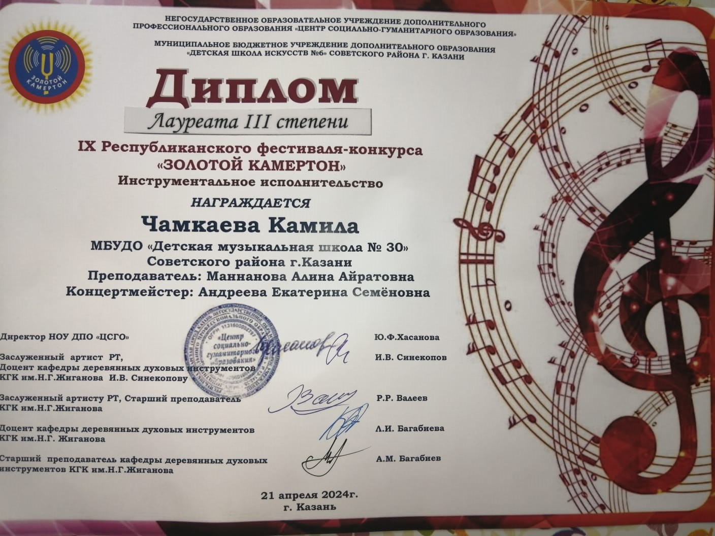 Муниципальное бюджетное учреждение дополнительного образования «Детская музыкальная школа №30» Советского района г.Казани