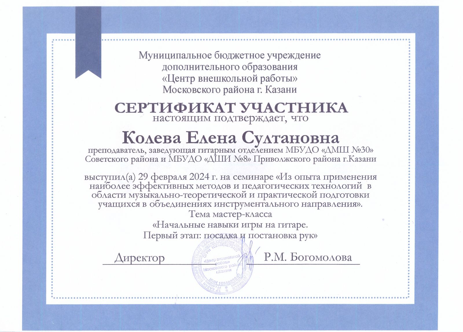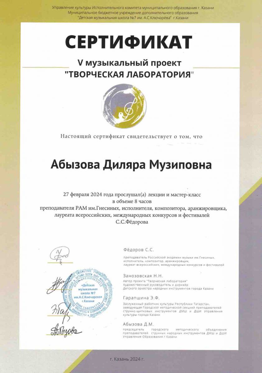 Мастер-класс преподавателя КМК им.И.Аухадеева Костягина А.В. - Маннанова А.А. - сертификат участника