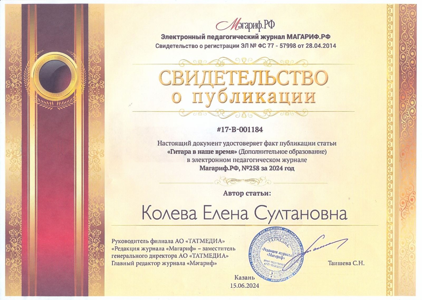Сайт электронного педагогического журнала МАГАРИФ.РФ - Колева Е.С. - статья "Гитара в наше время"