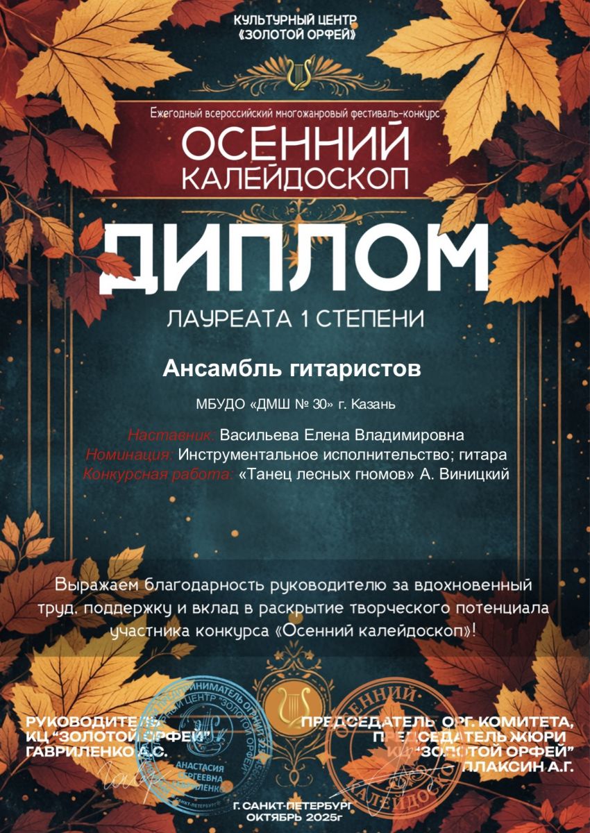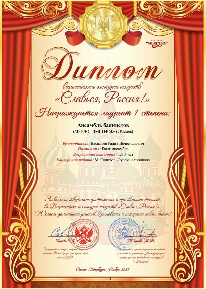 VIII Всероссийский конкурс исполнителей на народных инструментах "Русская палитра" (г.Москва) - учащиеся в составе детского оркестра народных инструментов г.Казани под упр. Занозовских