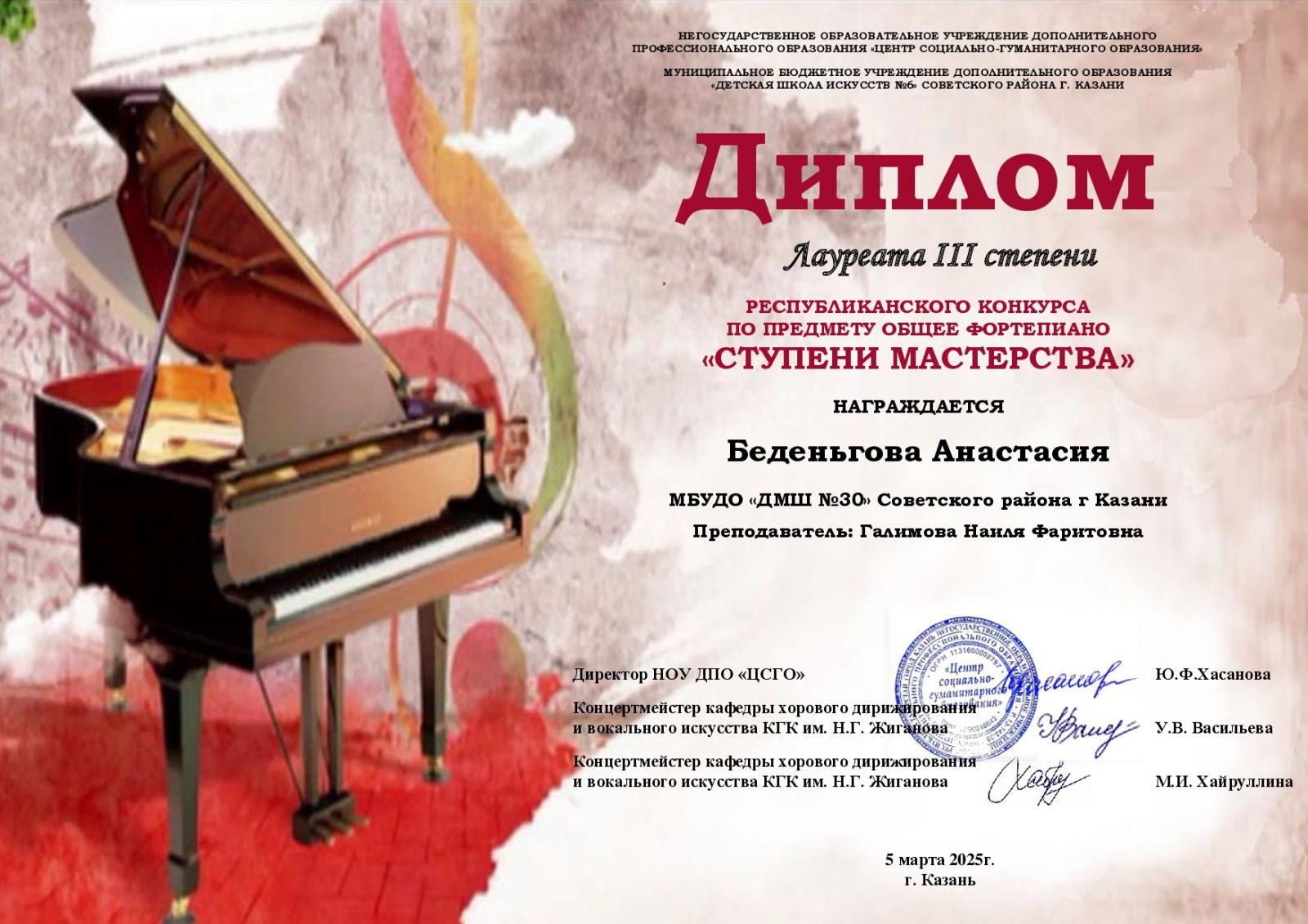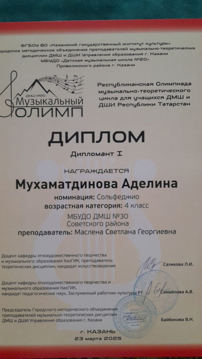 Муниципальное бюджетное учреждение дополнительного образования «Детская музыкальная школа №30» Советского района г.Казани