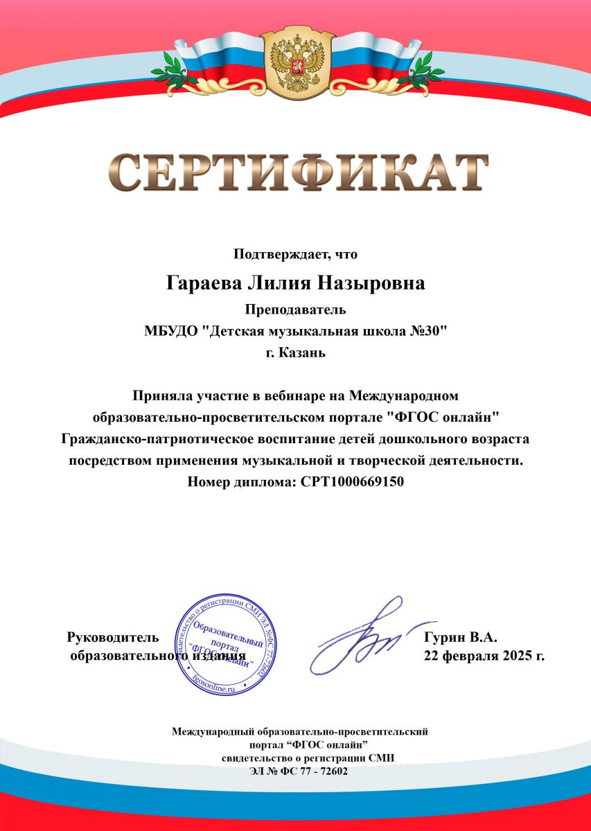 Городская конференция в рамках работы ГМО преподавателей струнно-смычковых инструментов на тему "Профессиональное становление молодого педагога-музыканта: проблемы и перспективы развития, поиск своего места в образовательном пространстве. Педагог-наставник- как основа становления молодого педагога" - Сытикова Н.А. - сертификат