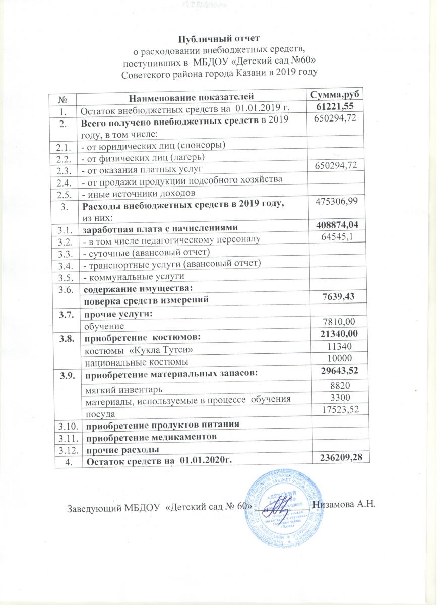 Отчет о привлечении и расходовании внебюджетных средств за 2019 год