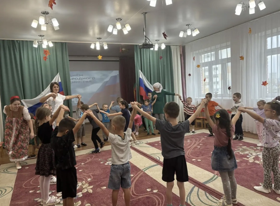 В День народного единства дети познакомились с историей и значением праздника, в игровой и творческой форме они мастерили коллективные плакаты, которые символизирует сплоченность и дружбу всех народов нашей страны. Ярким завершением праздника стали танцы и песни в народных костюмах. С Днем народного единства! Пусть в наших средцах всегда живут дружба и взаимопонимание!