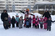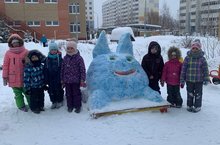 В детском саду прошел конкурс зимних построек "Зимняя фантазия". Родители совместно с детьми построили фигуры из снега.