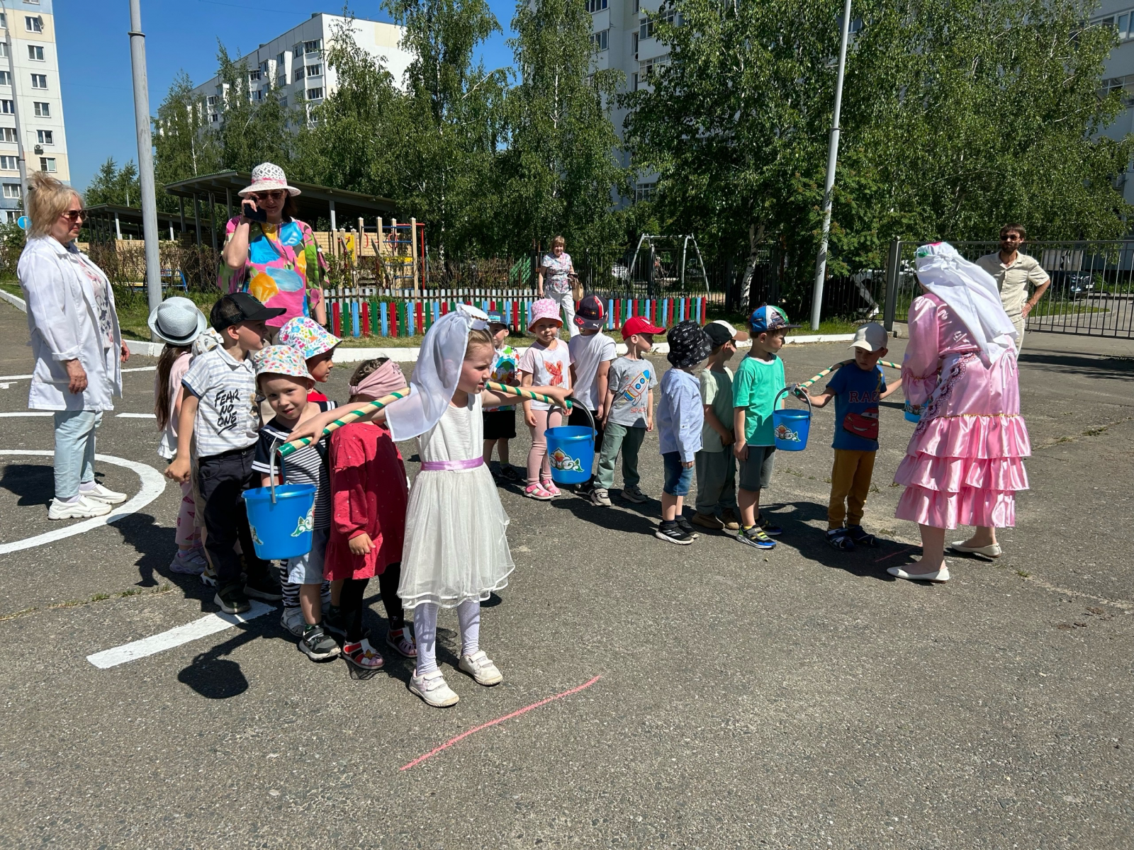 Радостно, звонко, тепло и красочно прошёл главный праздник детства – День защиты детей в нашем детском саду. Мы постарались в этот день создать праздничную атмосферу и порадовать детей весёлыми играми, песнями, плясками. К детям пришла в гости - Веселинка. Она восхищалась тем, как поют и танцуют дети и, конечно, много играла с ними, водила хороводы и подарила детям хорошее настроение. Было приятно видеть радостные детские лица и слышать весёлый детский смех. Надеемся, что в этот день, каждый ребёнок унёс с собой частичку нашего тепла и заботы.