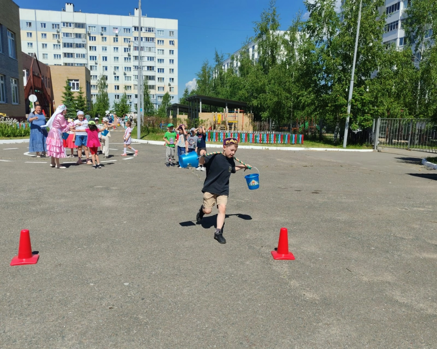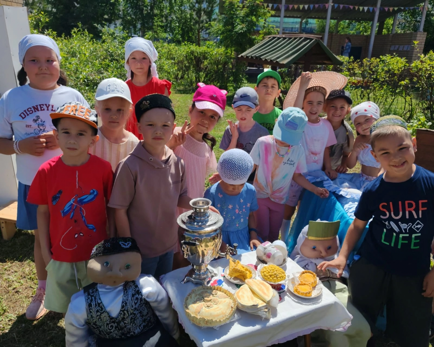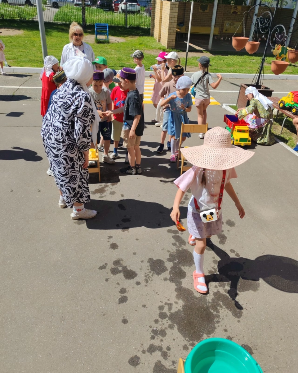 Сегодня в нашем детском саду прошёл долгожданный национальный татарский праздник - “Сабантуй». Праздник открыли стихами и песней “Сабантуйга барабыз”. Дети познакомились с татарскими народными играми: бег в мешках, разбивание горшка, бег с яйцом на ложке , скачки на лошадях и другие игры. Все игры сопровождались задорной музыкой. Детей порадовали подарки, участие в веселых играх и эстафетах. Праздник “Сабантуй” завершился весёлым татарским танцем. Было здорово, интересно, зажигательно!