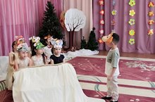 В старших возрастных группах к 8 марта ребята подготовили спектакль "Бияләй"