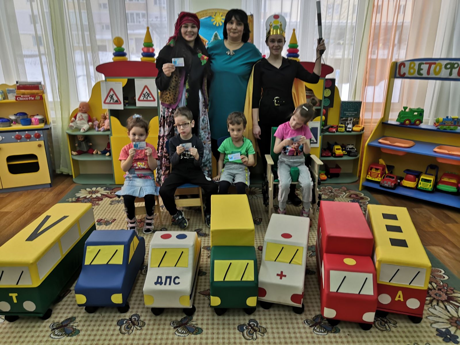 Сегодня сосотоялась втсреча с инспектором ГИБДД. В игровой форме воспитанники старших возрастных групп закрепили основные знания о безопасности дорожного движения. Всем воспитанникам раздали светоотражающие элементы.