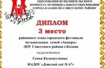Поздравляем семью Калимуллиных МАДОУ "Детский сад №67" с победой в районном этапе городского фестиваля музыкальных семей "Аккорд" в номинации "К 100-летию ТАССР"!