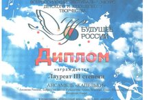 Диплом III Открытого Республиканского фестиваля - конкурса детских, юношеских, молодежных, творческих коллективов и исполнителей в рамках творческого проекта "Жемчужинка Татарстана - 2017" 10.04.2017