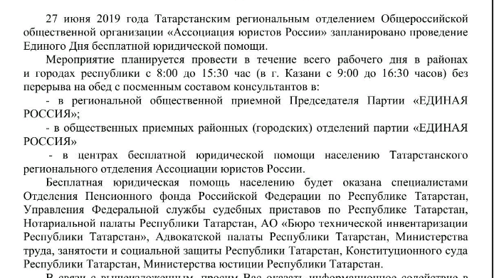 Единый день юридической помощи 27 июня 2019г.