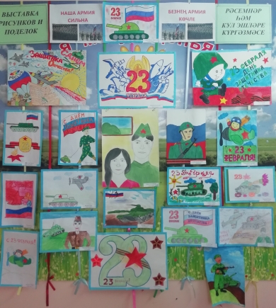 Безнең балалар бакчасында " Безнең Армия көчле !"дип аталган рәсемнәр күргәзмзсе узды. Күргәзмәдә солдатларның тормышы турында рәсемнәр, төрле хәрби һөнәр, хәрби техника, җир өсте, һава һәм су транспорты сурәтләре тәкъдим ителгән. Күргәзмәнең максаты: балаларның һәм ата-аналарның армия тарихы белән танышу процессында иҗади сәләтләрен үстерү өчен шартлар тудыру; ата-бабаларыбызның һәм Ватанны саклаучыларның героик гамәлләренә карата горурлык һәм хөрмәт тәрбияләү.