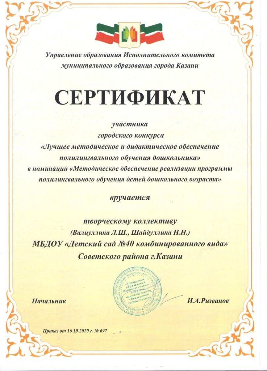 Наши педагоги Валиуллина Ляйсан Шарифовна и Шайдуллина Назира Нургалиевна приняли участие в городском конкурсе " Лучшее методическое и дидактическое обеспечение полилингвального обучения дошкольника" в номинации "Методическое обеспечение реализации программы полилингвального обучения детей дошкольного возраста"
