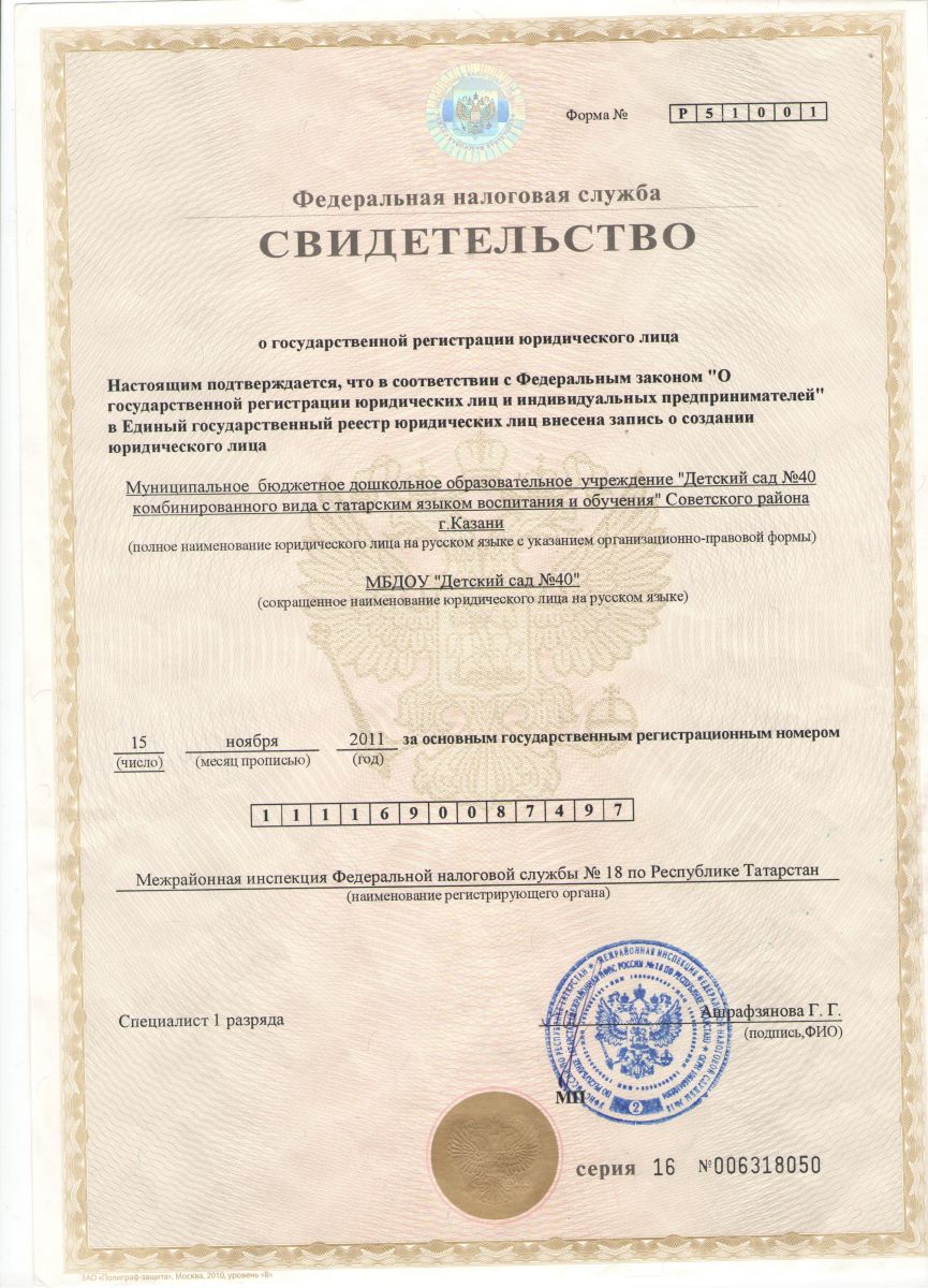 Муниципальное бюджетное дошкольное образовательное учреждение «Детский сад № 40 комбинированного вида с татарским языком воспитания и обучения» Советского района г. Казани
