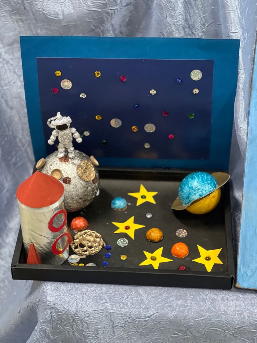 На выставке были предоставлены творческие работы по таким тематическим направлениям, как «Мир в недалеком будущем», «Профессия ученый», «Наука спасет планету», «Экспедиция на Марс» и др. Выставку украсили оригинальные поделки и рисунки, выполненные в различной технике: акварель, гуашь, пластилинография, паье - маше, техническое моделирование и т.д.