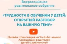 26 октября в 18:00 в онлайн-формате пройдет Всероссийское родительское собрание на тему «Трудности в обучении у детей: открытый разговор на важную тему» на YouTube канале Ассоциации родителей детей с Дислексией.