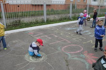 Разноцветными мелками маленькие художники рисовали лето. Получилось удивительно солнечная, большая картина: море цветов, полей, лугов и много, много солнца!