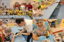 Познавательный, увлекательный и вкусный мастер - класс по приготовлению пирожного провела мама нашего воспитанника. Ребята познакомились с технологией приготовления сладкого "Ежика". Как известно, что готовится своими руками, то и съедается ещё лучше. Изготовление пирожного вызвало у детей бурю эмоций. Остаться без участной не смогла даже заведующая. А глядя на их счастливые, восторженные глаза понимаешь, насколько важно и значимо взаимодействие родителей в образовательном процессе! Выражаем благодарность таким активным родителям !!!