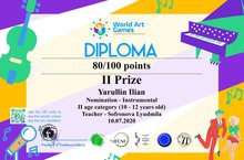 В дни летних каникул наши учащиеся продолжают участвовать в конкурсах. Поздравляем Яруллина Илиана и его преподавателя Софронову Л.А. с хорошим результатом! 27.07.2020