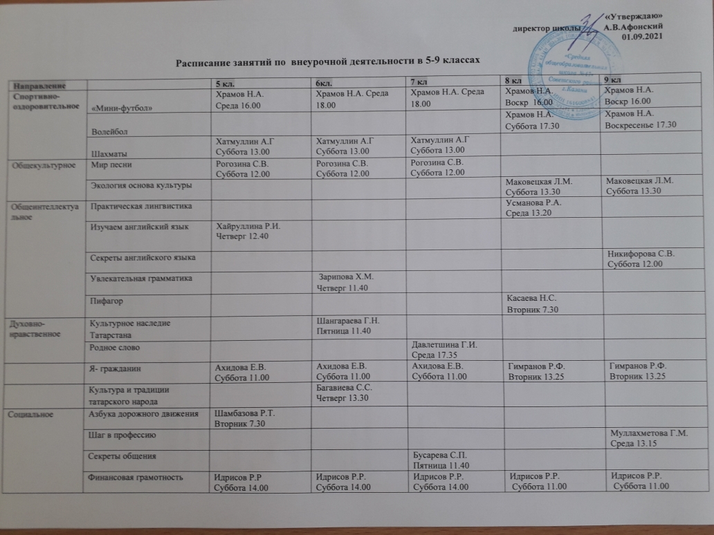 Внеучебная деятельность (работа кружков, секций, клубов) /Сыйныфтан тыш эшчәнлек (түгәрәкләр, секцияләр, клублар эше)